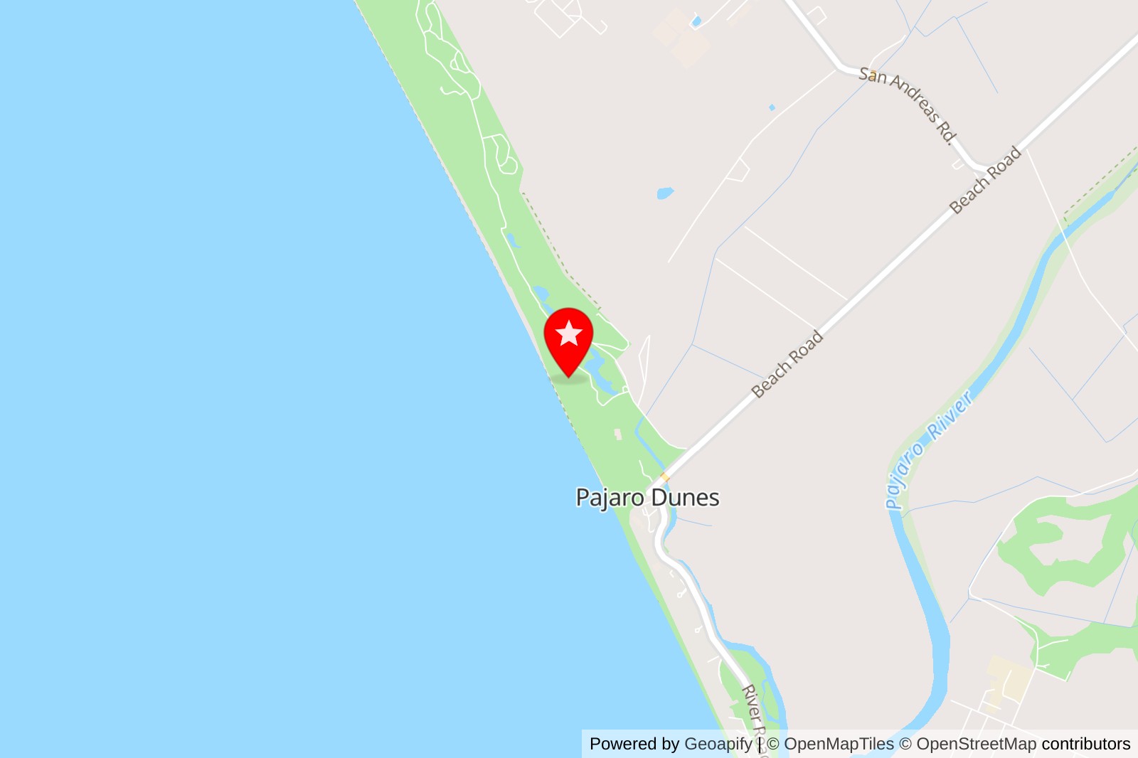 Pajaro Dunes Resort is a quiet, gated community right on the coast with a stretch of 1.5 miles of beach. You’ll find a mix of beachfront houses, townhomes, and condos that fit well with the natural ocean landscape. It’s a great spot if you want to enjoy some peaceful beach time away from the crowds.